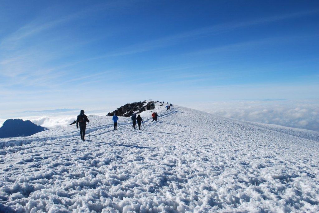 We continue to the summit in a switchback formation, trying to stay warm and focused on the fantastic sense of accomplishment ahead. With a switchback motion, we ascend through heavy scree and possibly snow towards Gillman’s Point on the crater rim. You will be rewarded with the most magnificent sunrise during your short rest here. Faster hikers may view the sunrise from the summit. From here, you will likely encounter snow on your remaining 1-hour ascent to Uhuru Peak.
