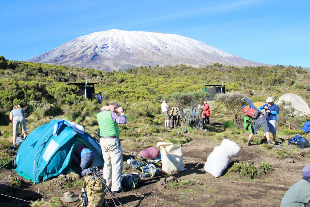 Midway through the trek, you’ll rest and acclimatize at the scenic Mawenzi Tarn Camp, nestled beneath the dramatic spires of Mawenzi Peak. From here, you’ll cross the vast alpine desert known as “The Saddle” en route to Kibo Hut, your final base before the summit push.